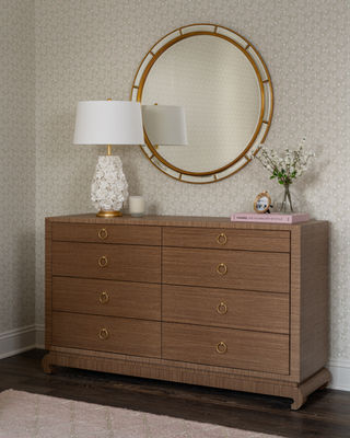 Inside, the design unfolds through a cohesive palette of soft neutrals, layered textures, and intentional detailing. The living and dining spaces are anchored by coffered ceilings, custom built-ins, and curated decorative accents that add depth without overwhelming the calm, airy feel of the home. Each room flows seamlessly into the next, reinforcing a sense of balance and livability while still delivering moments of visual interest.
